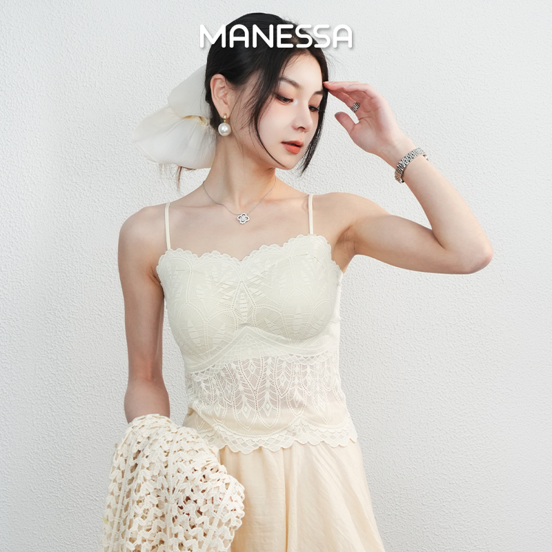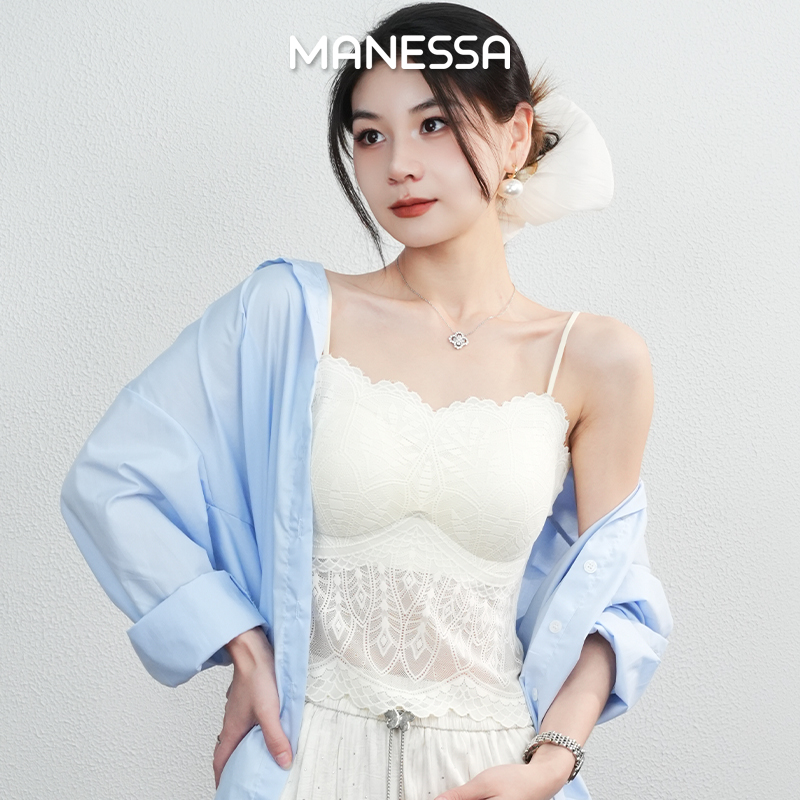 曼娜莎瑰梦花期蕾丝性感百搭舒适夏季 凉感吊带背心显瘦无痕美背