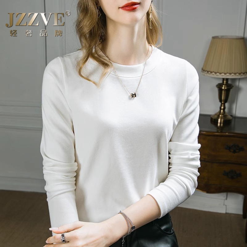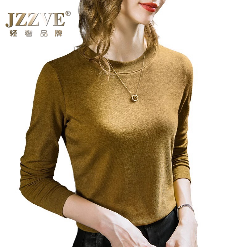 t恤女 上衣内搭百搭长袖 莫代尔棉圆领t恤女时尚 百搭纯色女士打底衫