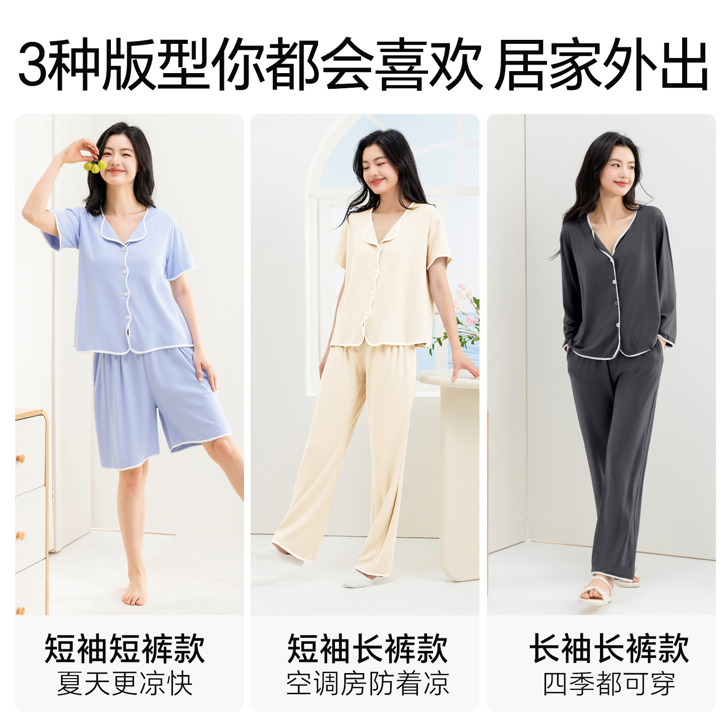 极简撞色 可外穿家居服套装 2025新款 纯棉长袖 睡衣女春秋季 轩靓