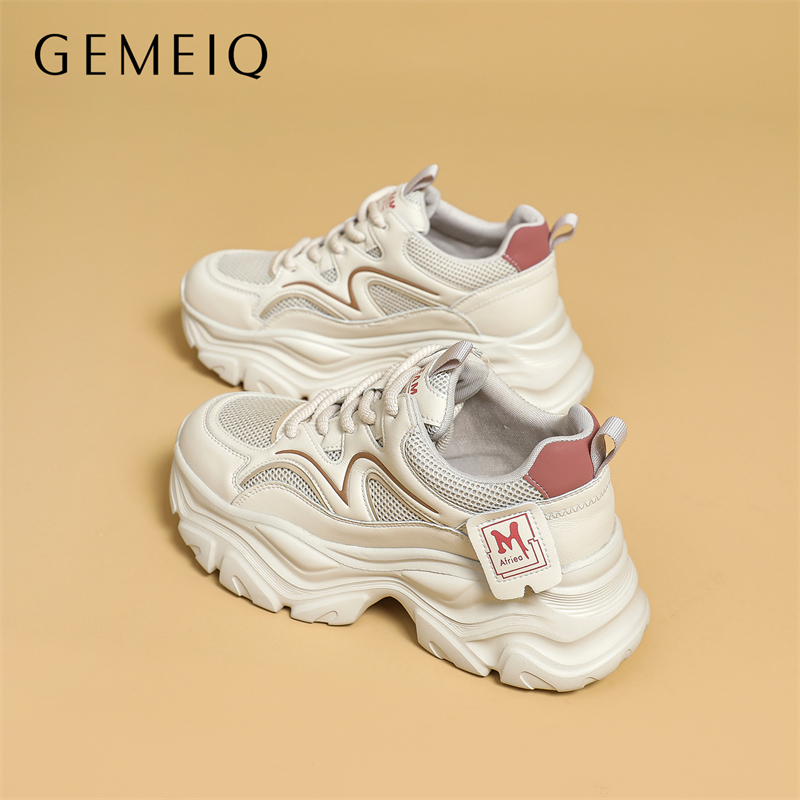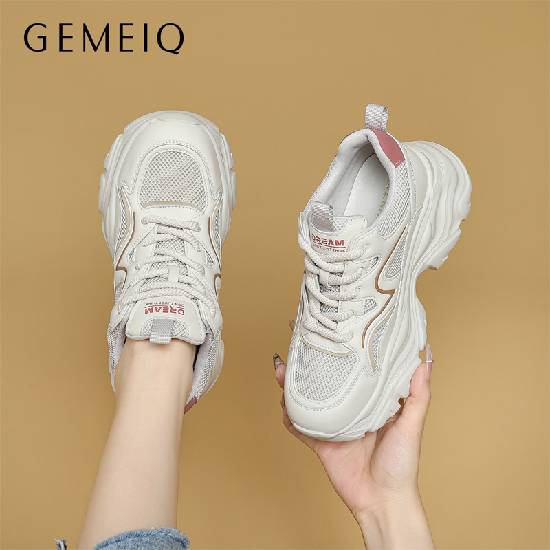 莆田男鞋 秋冬透气网面防臭复古百搭运动休闲跑步厚底增高老爹潮鞋