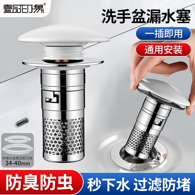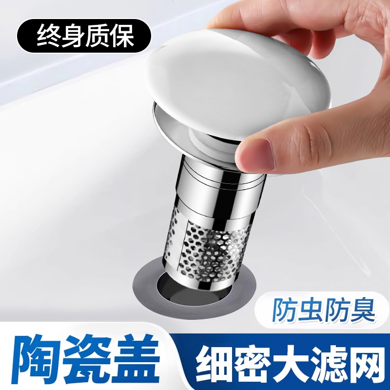 陶瓷洗手盆漏水塞子面盆弹跳芯下水器防臭按压式 洗脸池洗脸盆配件