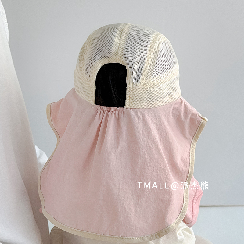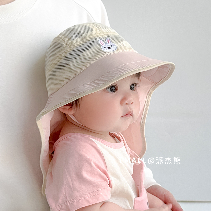 宝宝防晒帽子夏季 大帽檐披肩遮阳帽户外全网小熊速干渔夫帽子婴儿