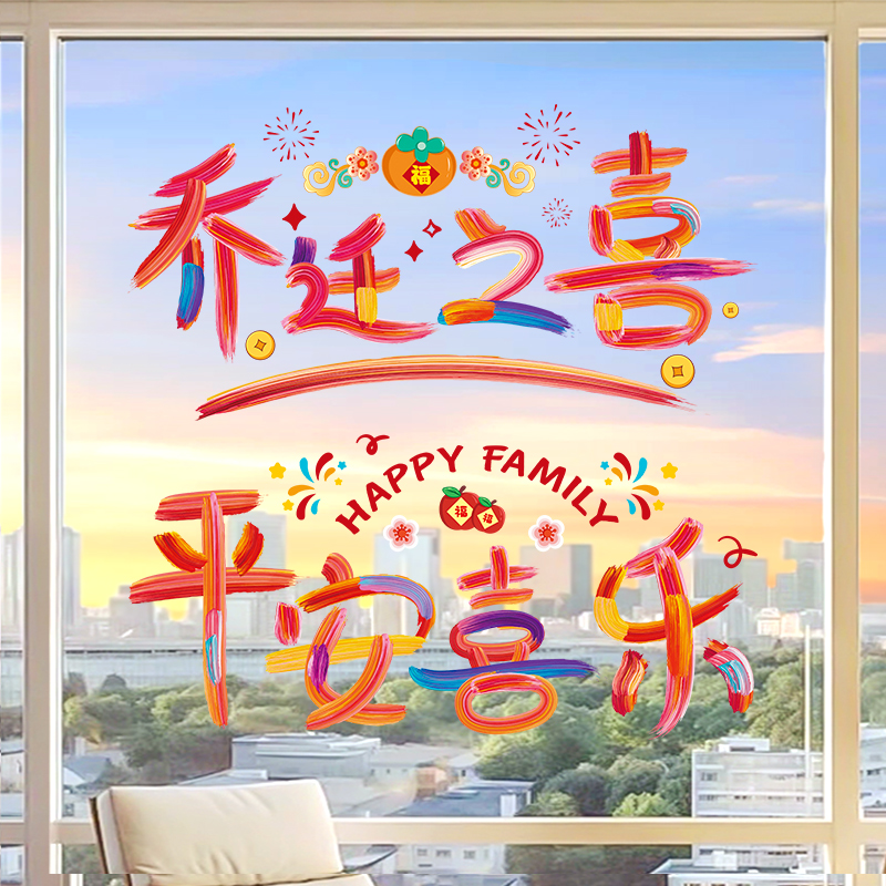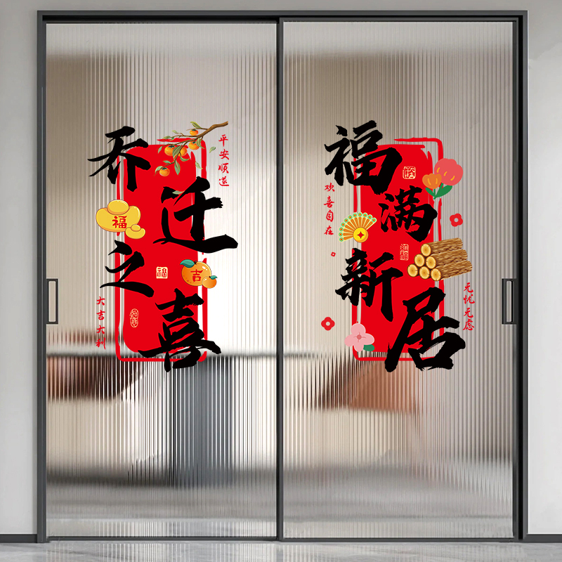 乔迁之喜新居装 用品全套入伙礼物 饰布置窗花静电贴纸搬家入宅仪式