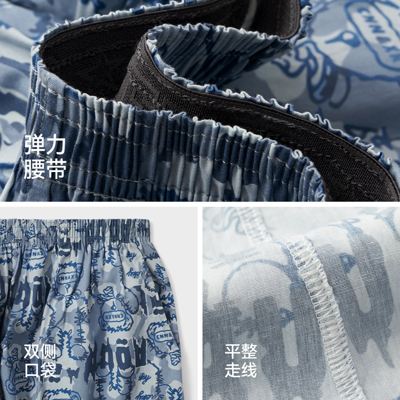 四角裤 头阿罗裤 男士 全棉睡裤 宽松大码 平角裤 纯棉内裤 睡觉家居 短裤