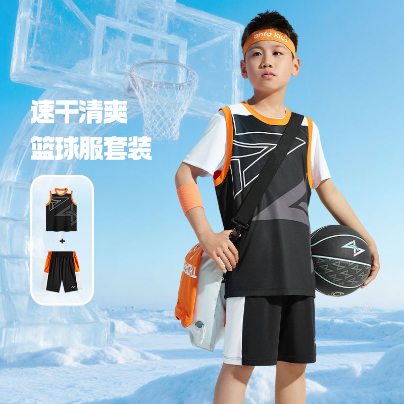 速干短装 安踏儿童套装 2025夏新款 套装 比赛套 男童篮球服背心短裤