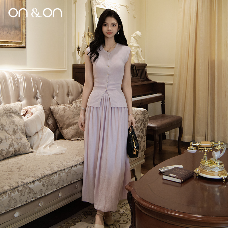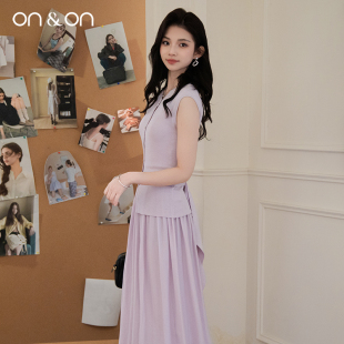 韩系圆领系带气质温柔淡人穿搭套装 新款 裙 安乃安2025夏季 ON&ON