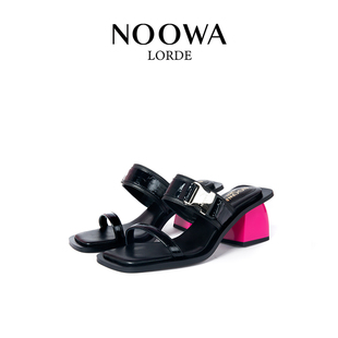 NOOWA方头凉拖鞋 露趾凉鞋 女2025款 轻奢法式 拼色真皮时尚 明星同款