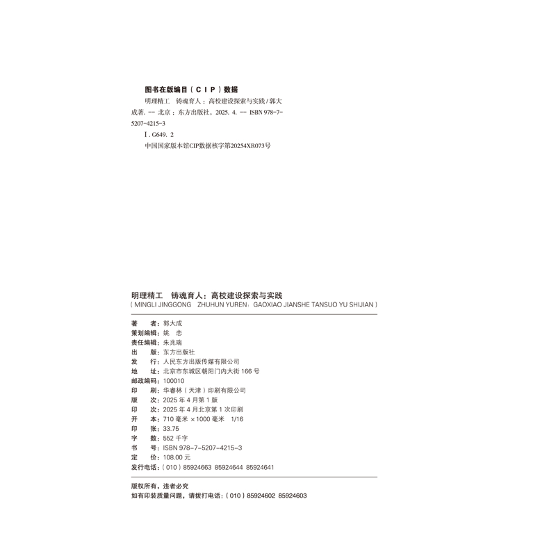 社新华书店正版 明理精工 教育普及东方出版 郭大成教育 铸魂育人