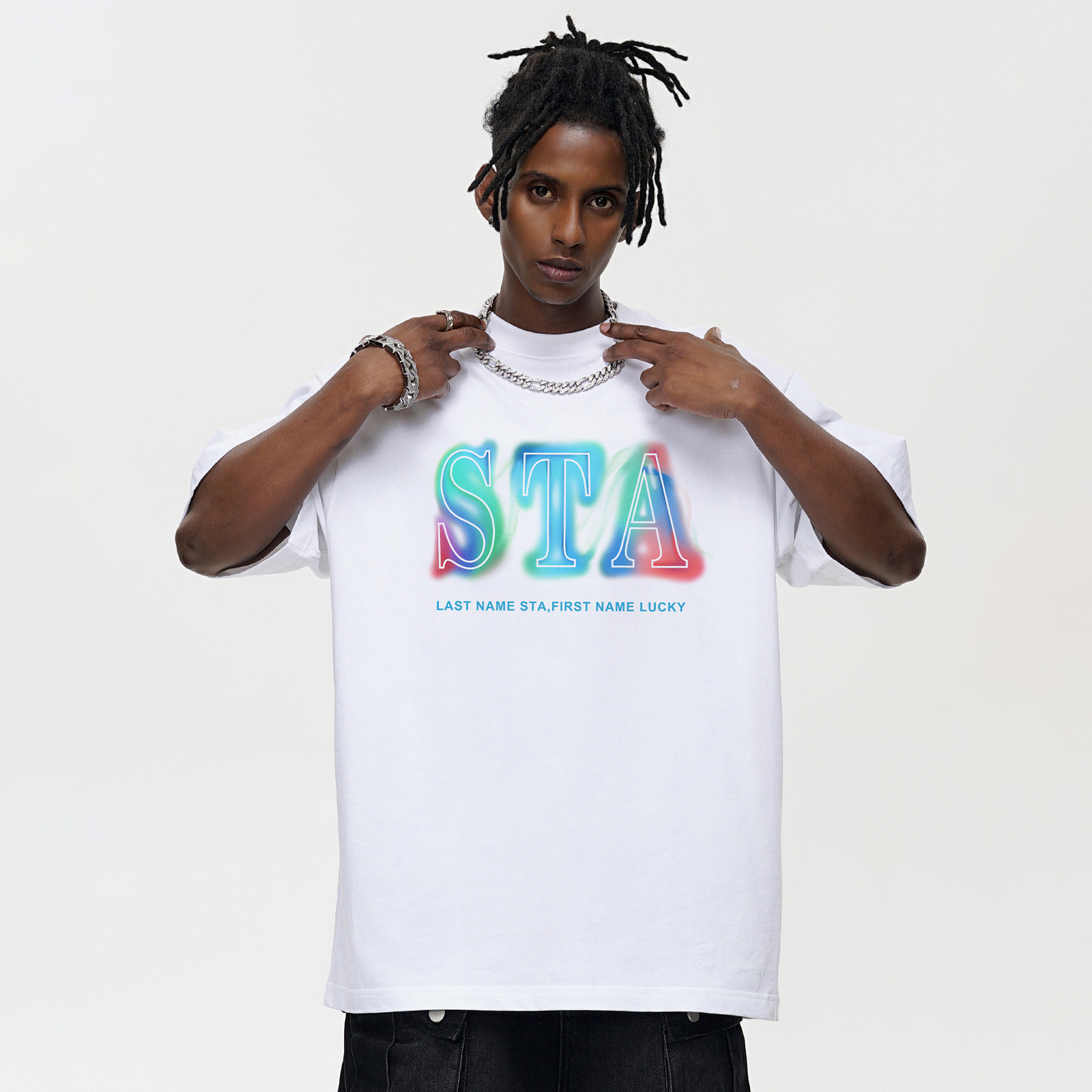 新款 T恤男女夏季 宽松休闲百搭圆领 复古字母印花纯棉短袖 STA美式