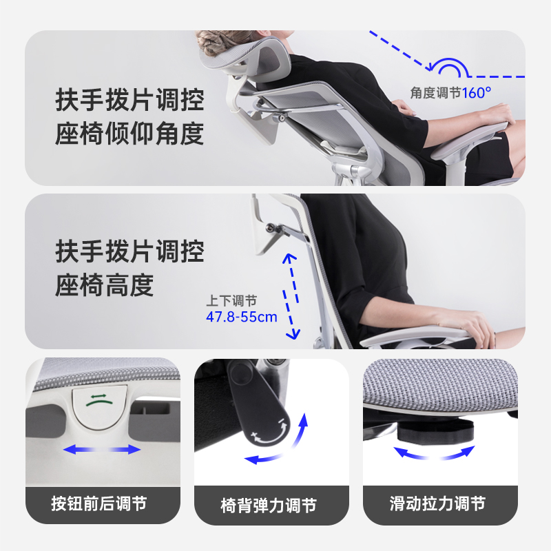 黑白调新P2 Pro人体工学椅电脑椅家用舒适久坐办公椅学习椅电竞椅