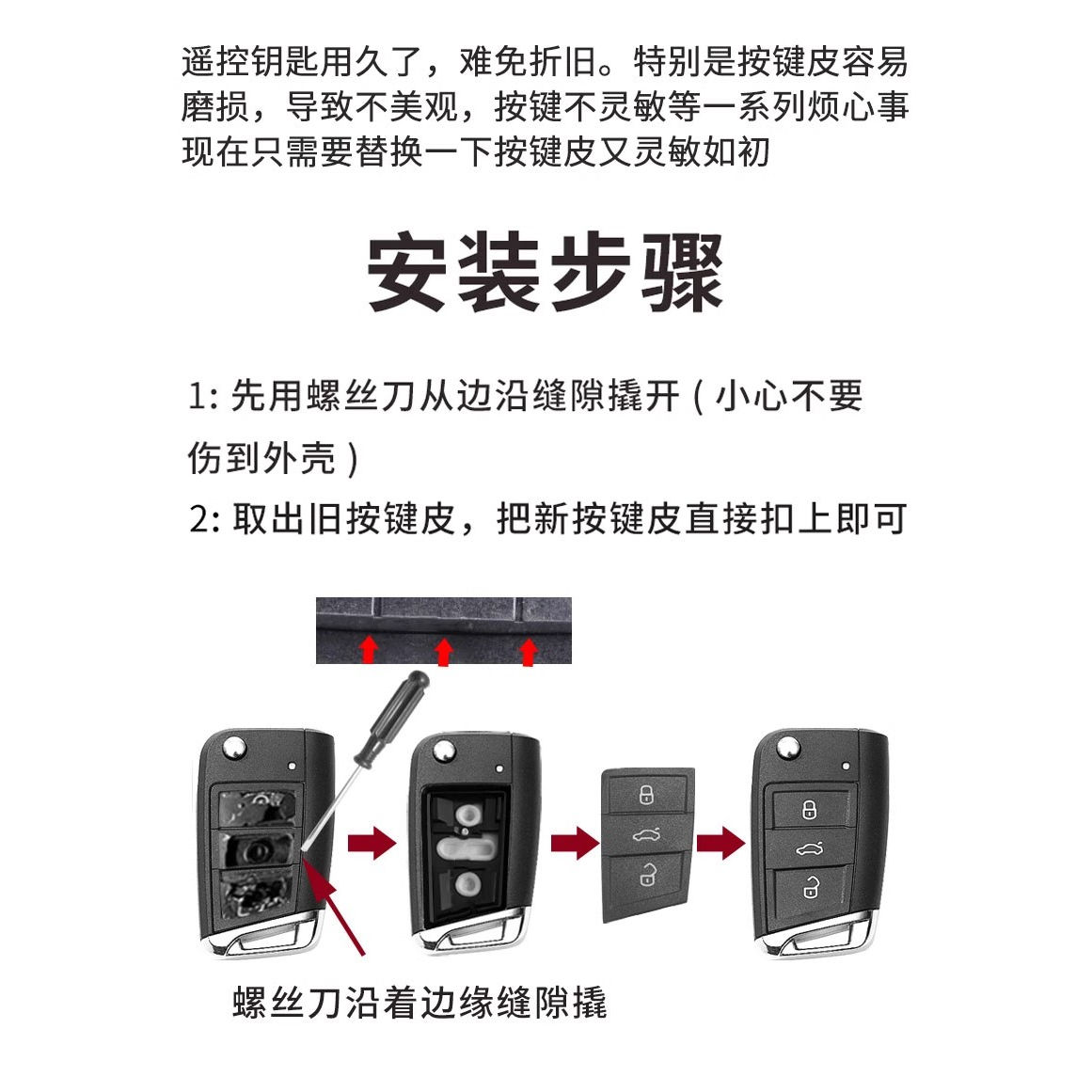 适用于大众桑塔纳捷达途安L途昂途岳途观L汽车遥控钥匙按键皮替换
