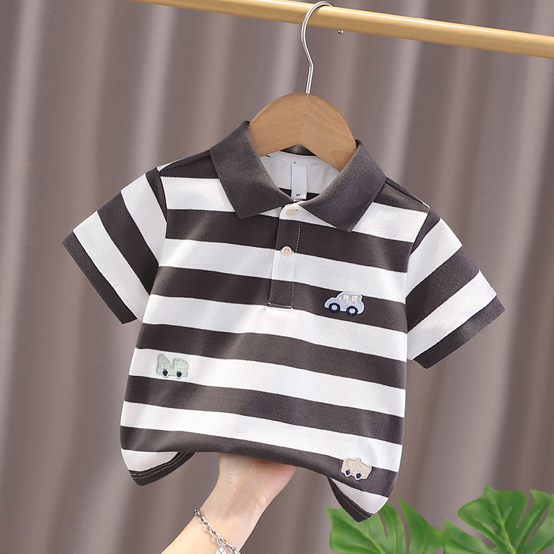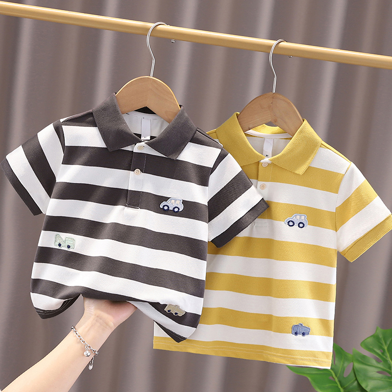 男童短袖 小童洋气POLO衫 T恤夏季 儿童翻领条纹半袖 新款 古卡恩童装