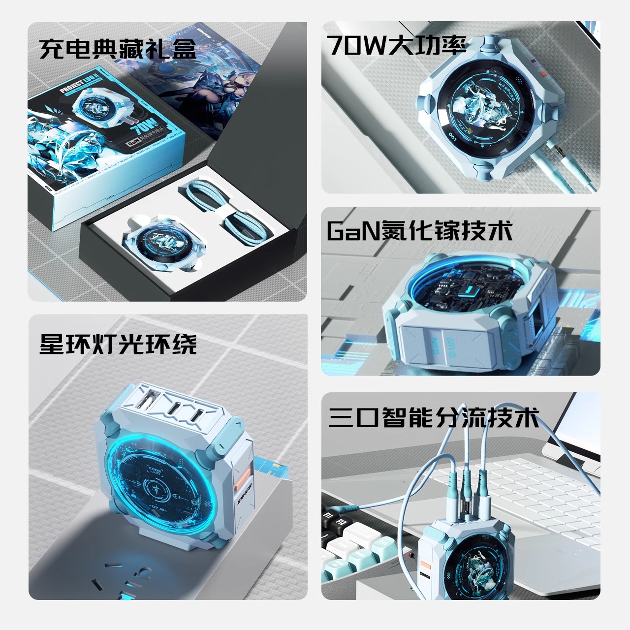 songx洛天依联名氮化镓70w快充头适用安卓华为苹果手机PD快充多口