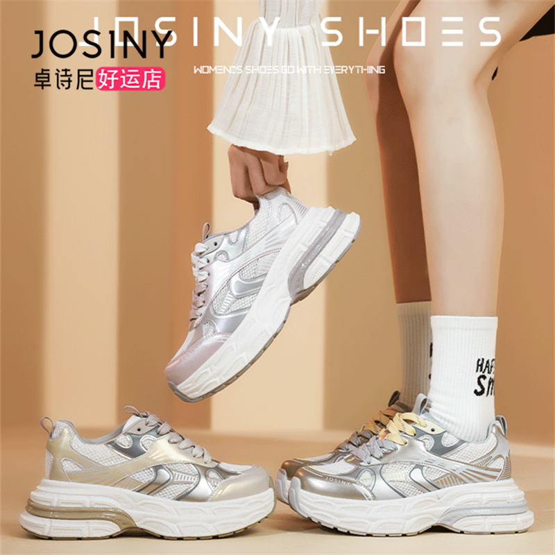 子女厚底增高运动鞋 环球白色超火老爹鞋 百搭休闲鞋 2025新款 女秋季