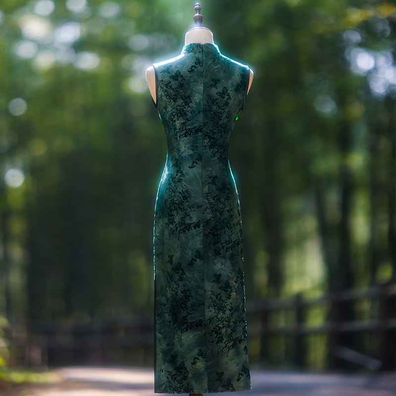 新中式 年会礼服改良旗袍 国风盘扣绿色丝绒连衣裙女2025年秋冬新款