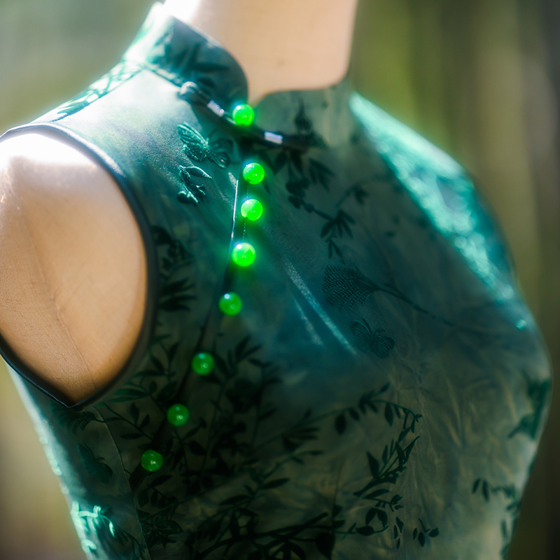 断码 盘扣旗袍领连衣裙收腰长袖 秒杀 新中式 缎面气质 太平鸟女装