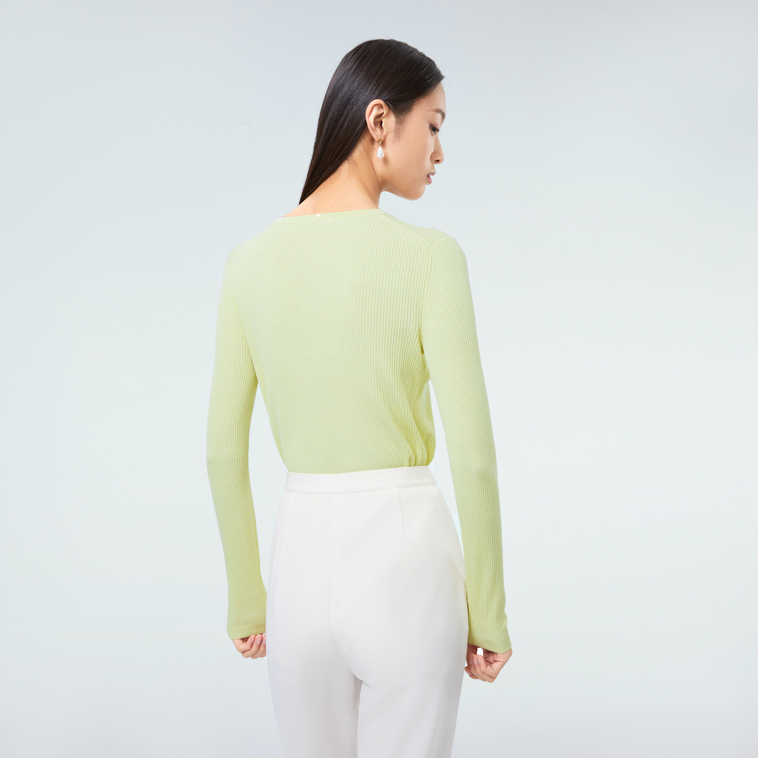 针织衫 舒适透气桑蚕丝长绒棉混纺罗纹长袖 女装 OVV热卖