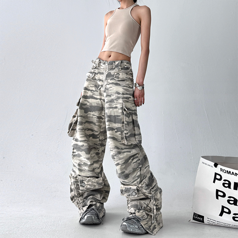 慵懒宽松显瘦拖地长裤 KRO原牛色阔腿牛仔裤 女新款