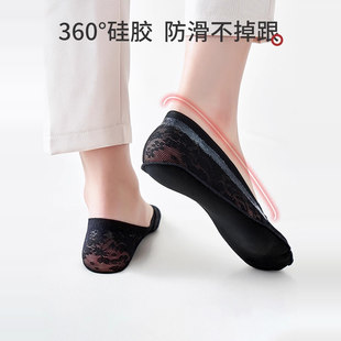 船袜女夏季 棉质吸汗透气蕾丝隐形袜浅口不掉跟硅胶防滑脚底薄袜子
