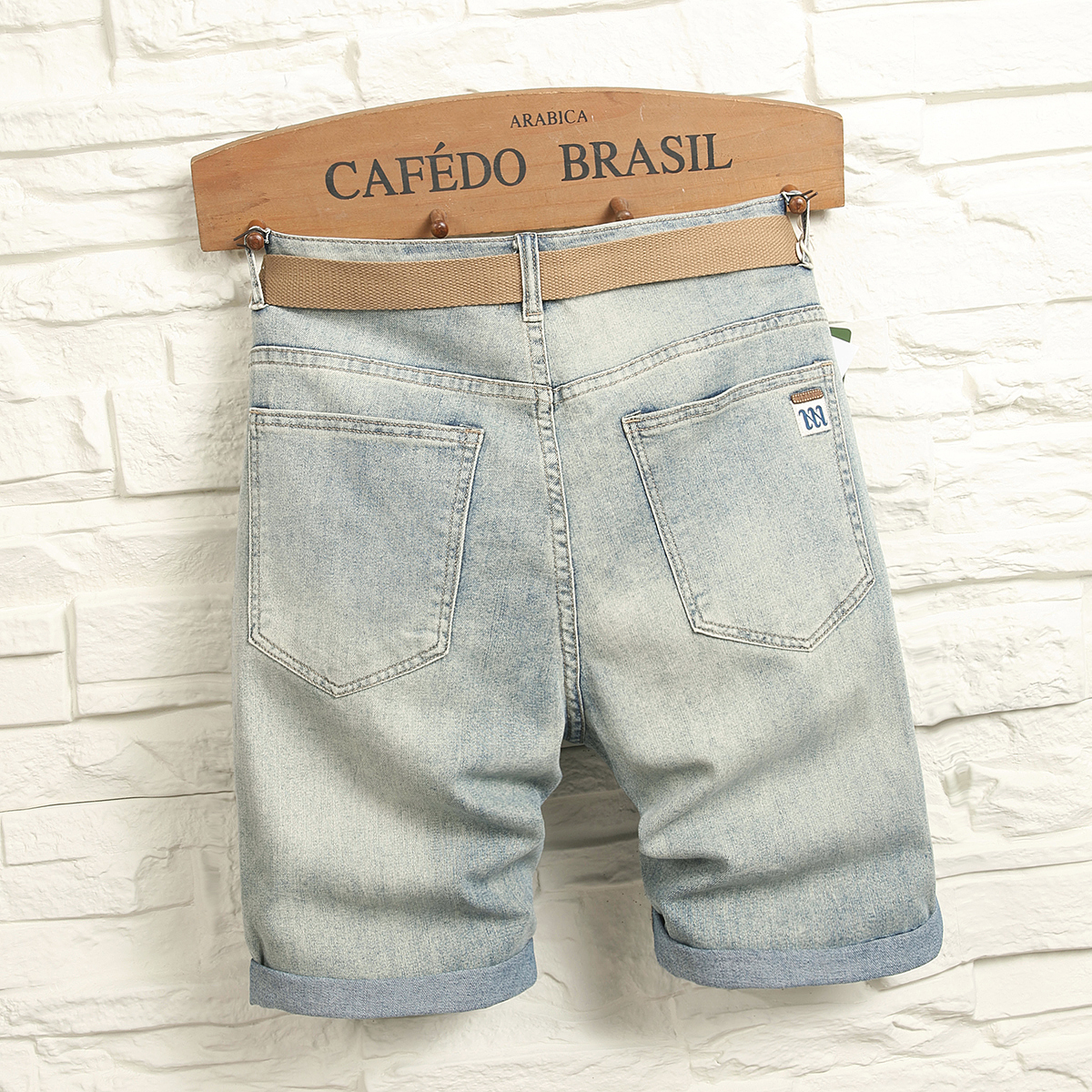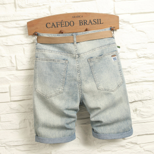 复古浅蓝短裤 美式 休闲中裤 弹力五分裤 潮牌5分 2025年男款 修身 夏季