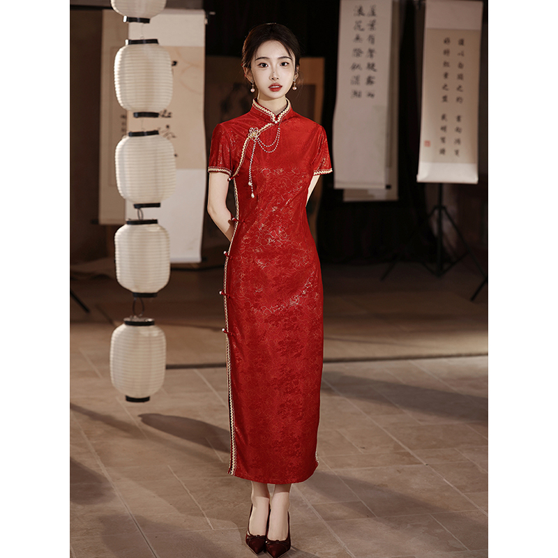 国风订婚敬酒礼服裙子 新中式 红色改良旗袍连衣裙女2025年秋季 新款