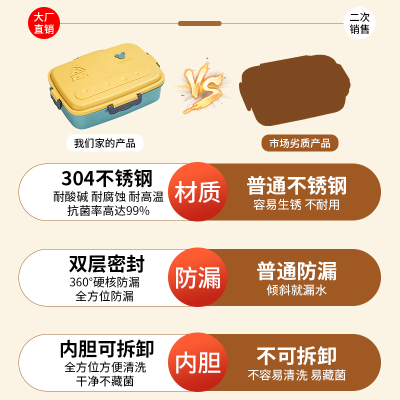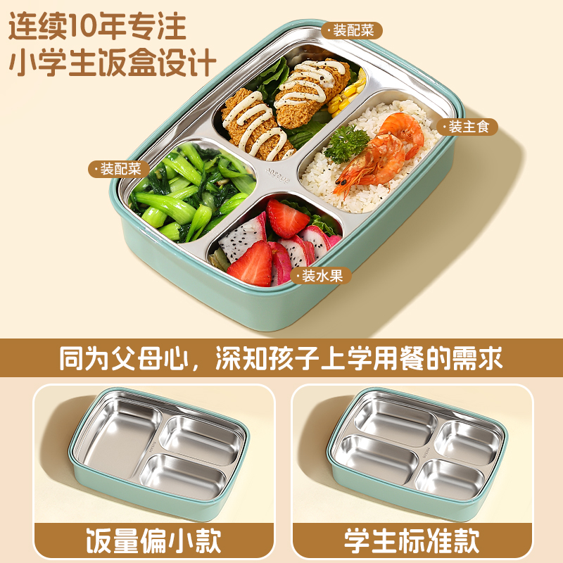 不锈钢保温餐盒饭盒学生多分格便当盒专用初中生儿童四格餐盘上学