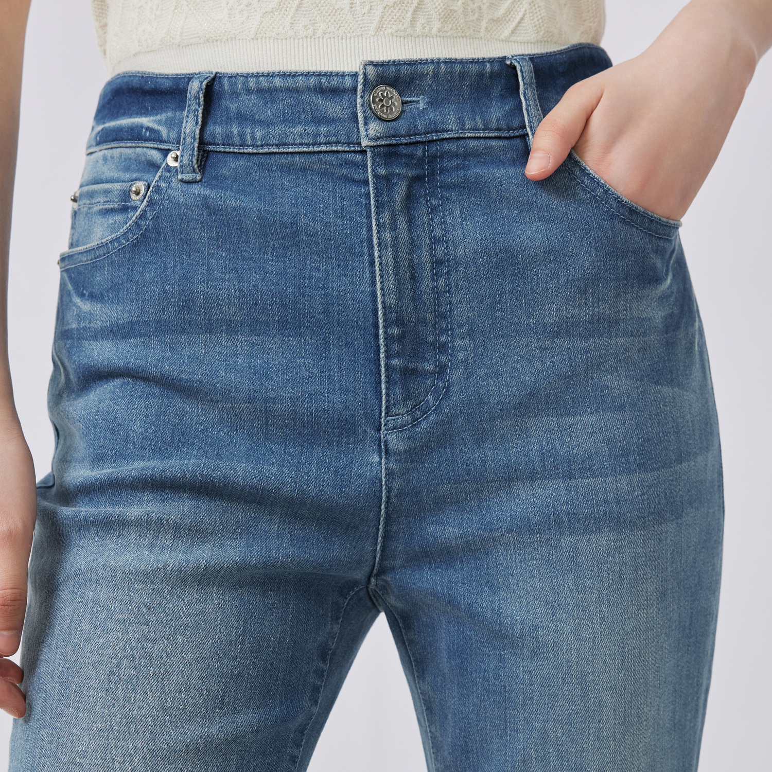 显瘦微喇侧开叉长裤 LIME莱茵棉质弹力复古浅蓝色牛仔裤 2024秋新款