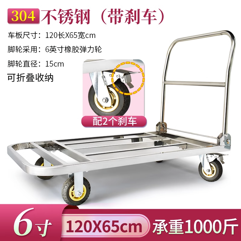 方管不锈钢手推车折叠轻音平板车拉货车推货车小推车拖车小拉车