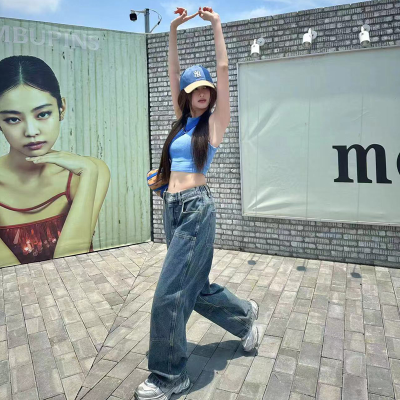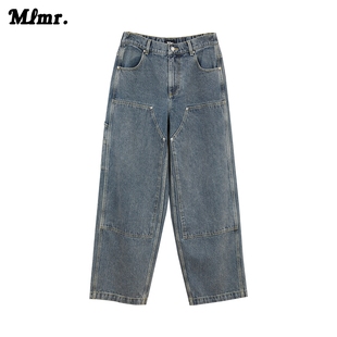 男女款 MLMR宽松工装 纯棉舒适牛仔阔腿长裤 型牛仔蓝潮流简约时尚 版