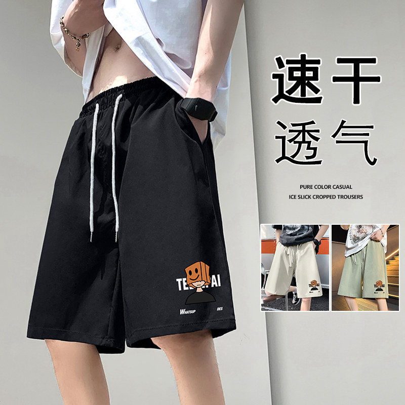 男夏季 沙滩五分裤 薄款 大码 子5 卡通印花运动美式 冰丝速干休闲短裤