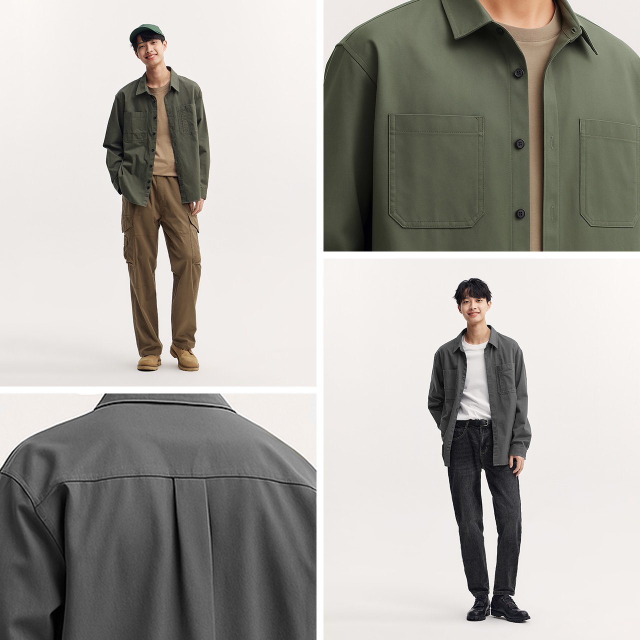 休闲简约外套男士 衬衫 通勤上装 2025秋季 GXG男装 新品 微肌理长袖