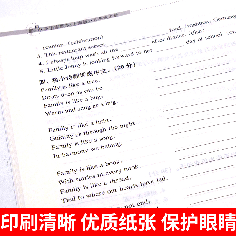 初中英语家默本六年级上册6年级英语单词默写本上海沪教版 社 教材初中课本同步默写训练牛津英语家默本六年级第一学期上海教育出版
