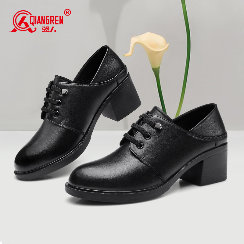 小皮鞋 强人3515女鞋 鞋 职业OL工装 舒适中跟久站不累 真皮粗跟女单鞋