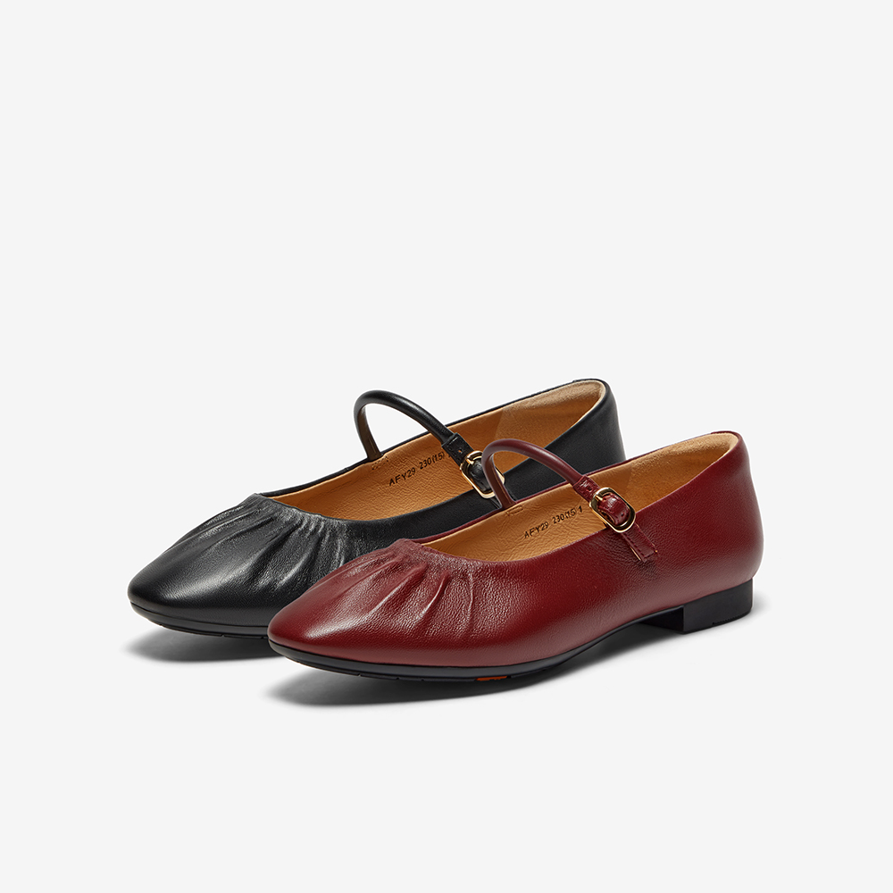AFY34AQ5 复古软底浅口鞋 Bata羊皮书玛丽珍单鞋 女2025商场新款