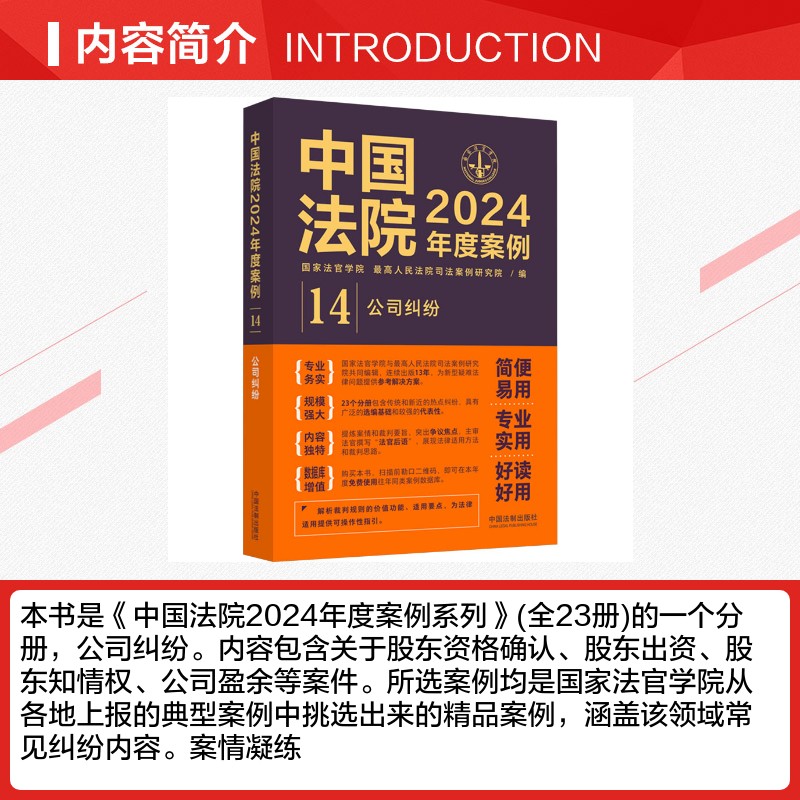 最高人民法院司法案例研究院 编 司法案例 中国法院2024年度案例 新华书店正版 国家法官学院 实务解析社科 图书籍 公司纠纷