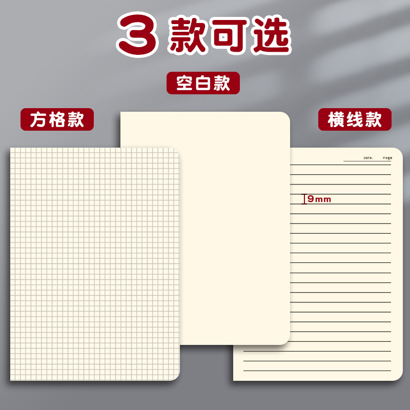 梦瑾加厚牛皮纸笔记本子大学生高中生通用b5简约纯色横线记事本空白草稿本软面抄大本子初中生专用作业本子