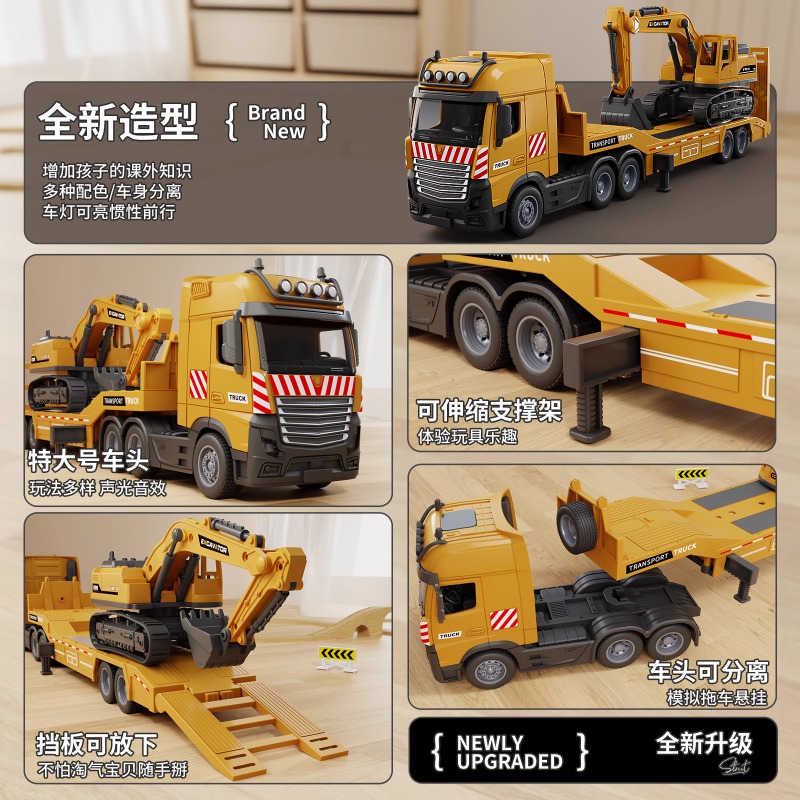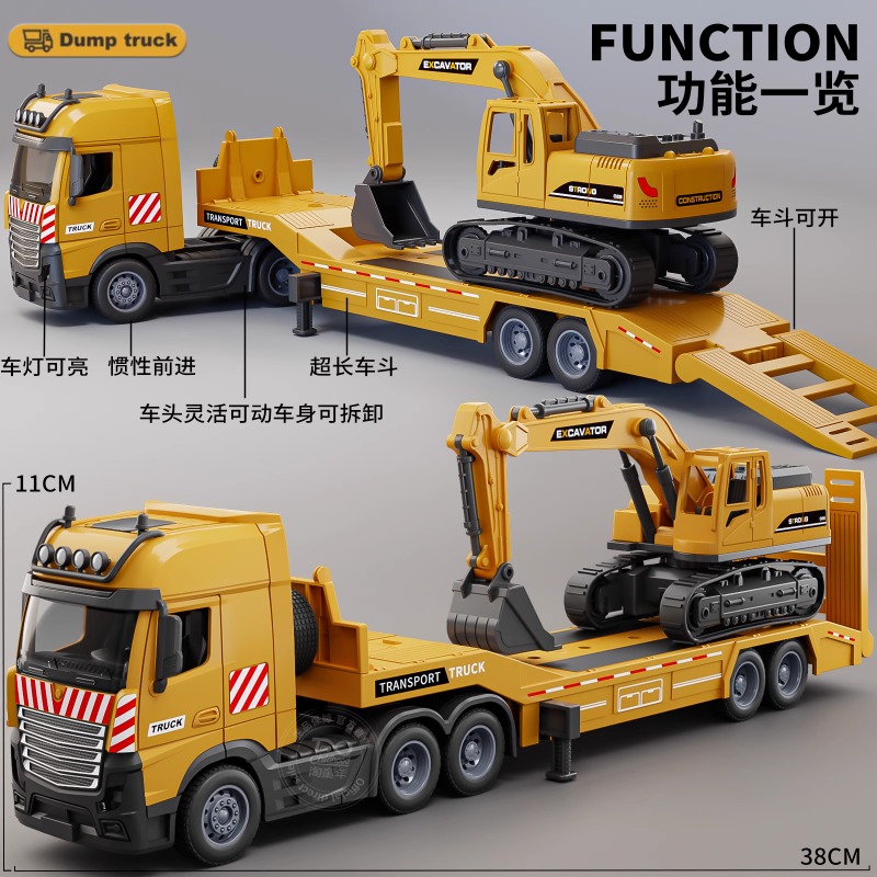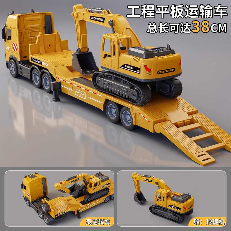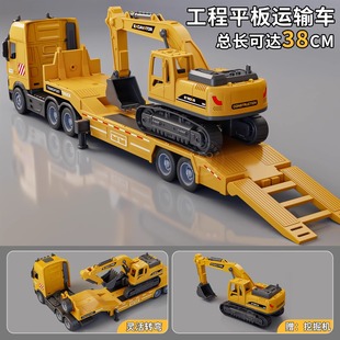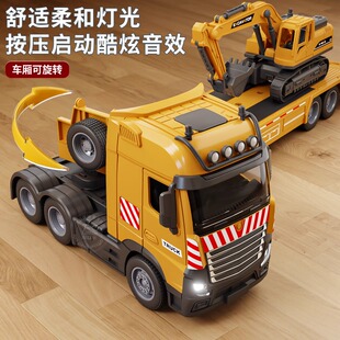 大号拖车玩具儿童挖掘机运输车仿真工程车平板拖车汽车模型