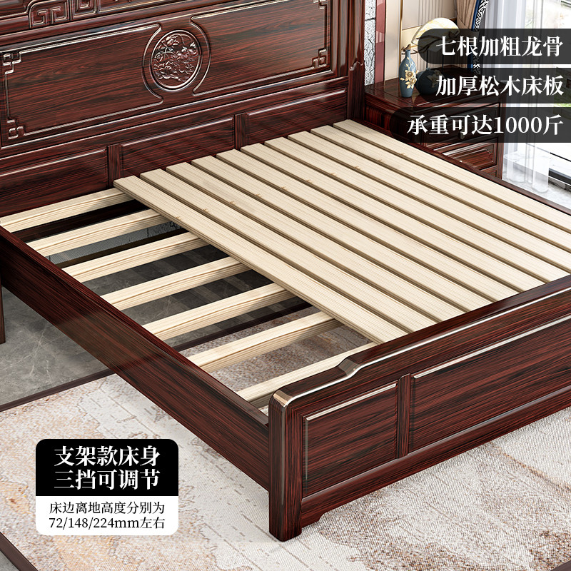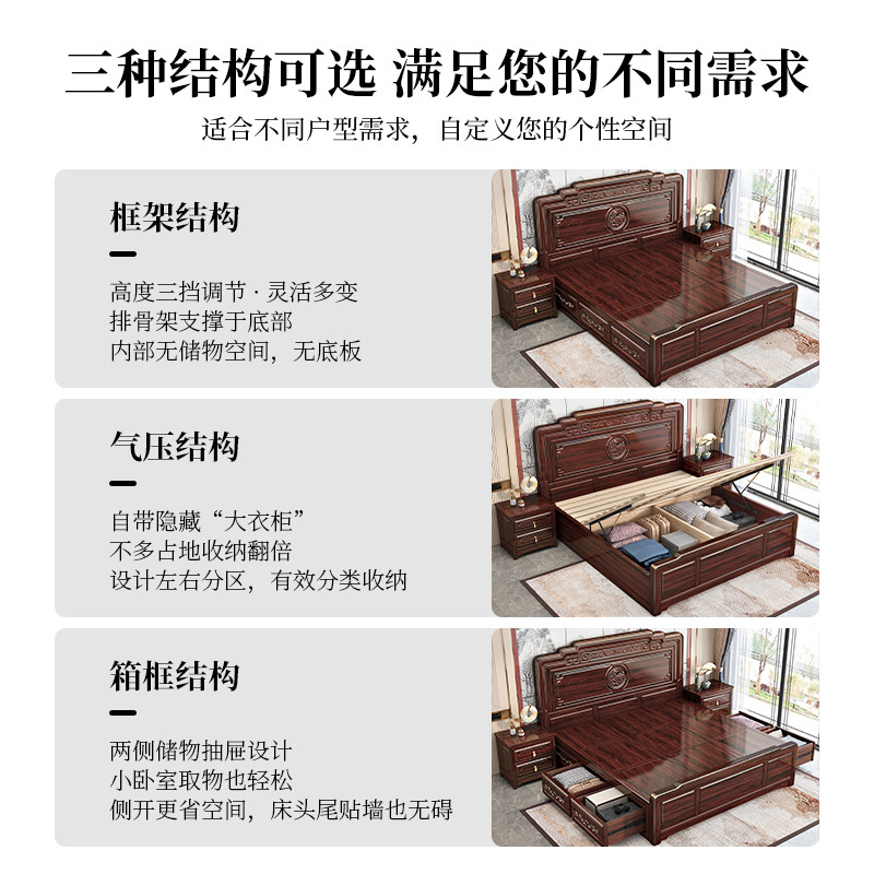 新中式 红木床家用卧室实木双人床古典高端酸枝木大床复古储物家具