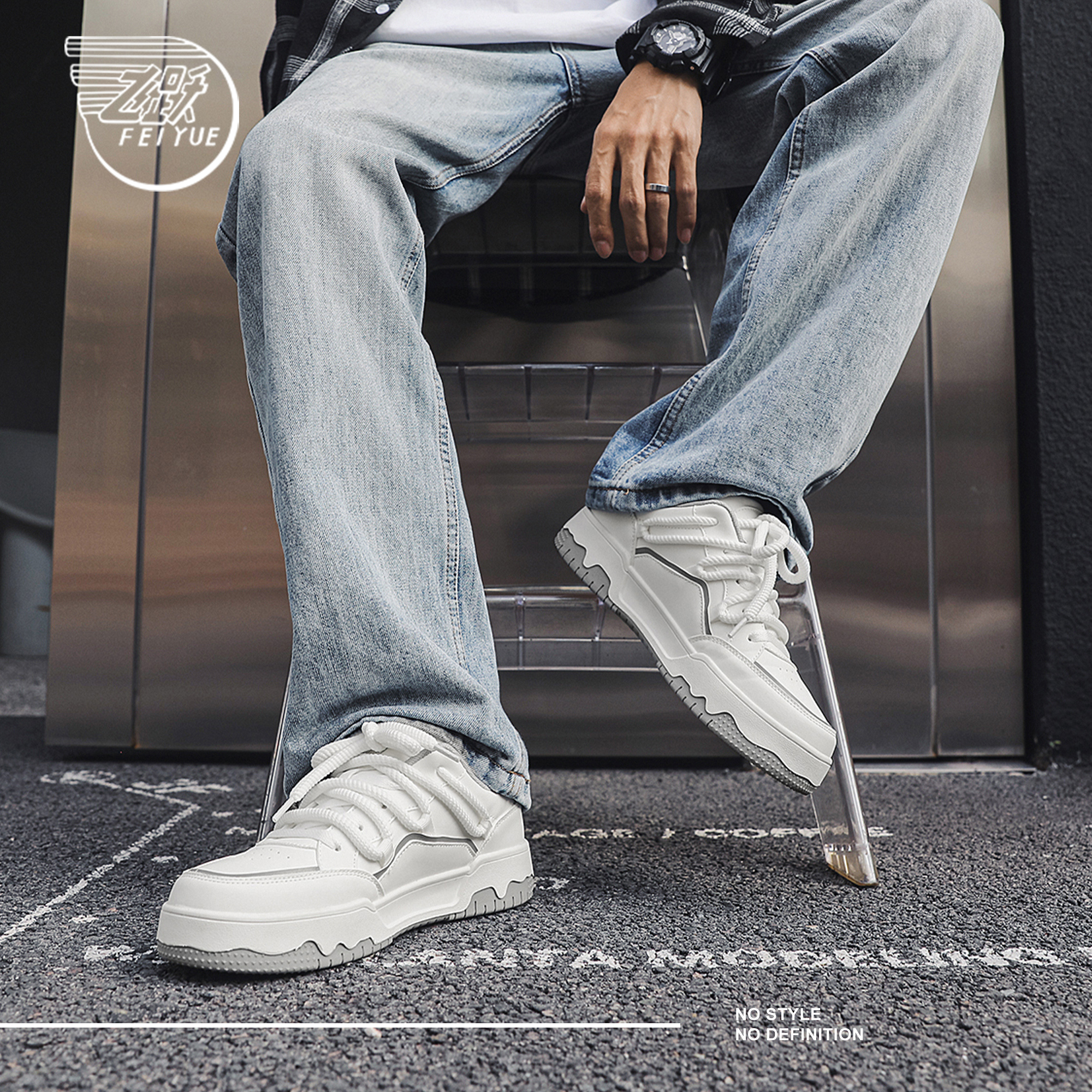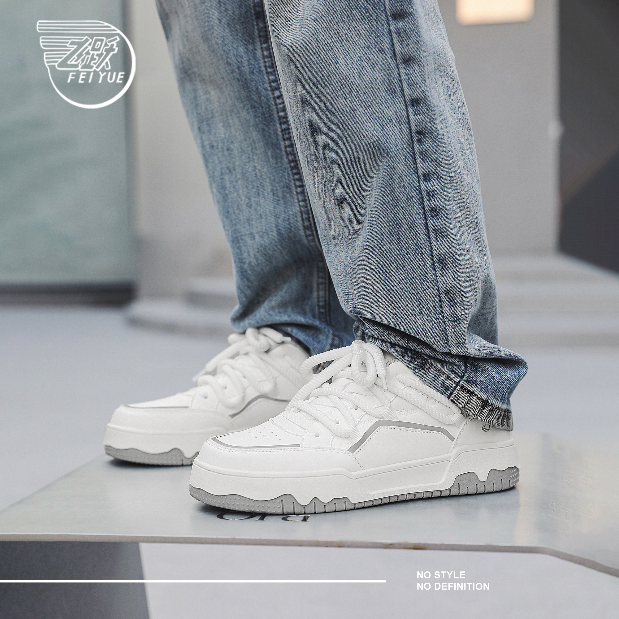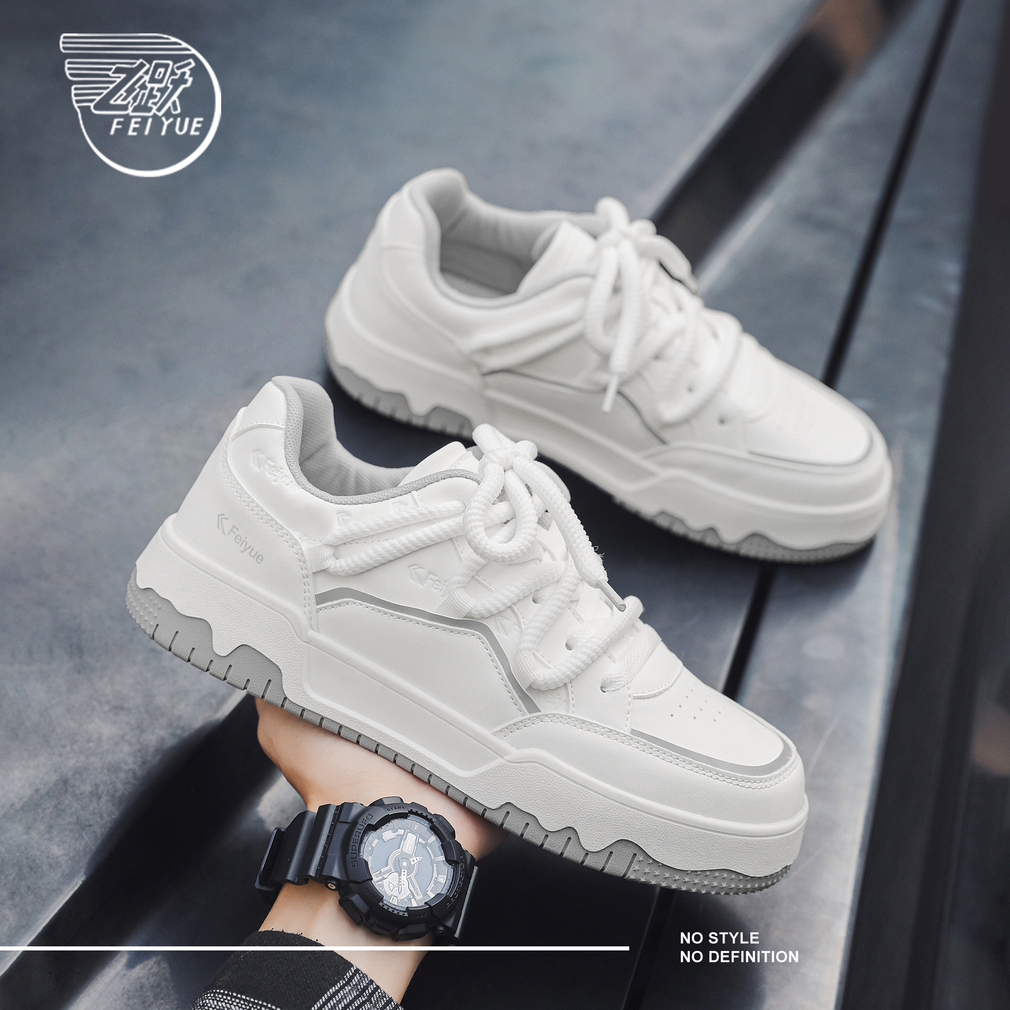 增高平底面包轻便跑步休闲运动板鞋 秋季 男2024新款 飞跃厚底小白鞋