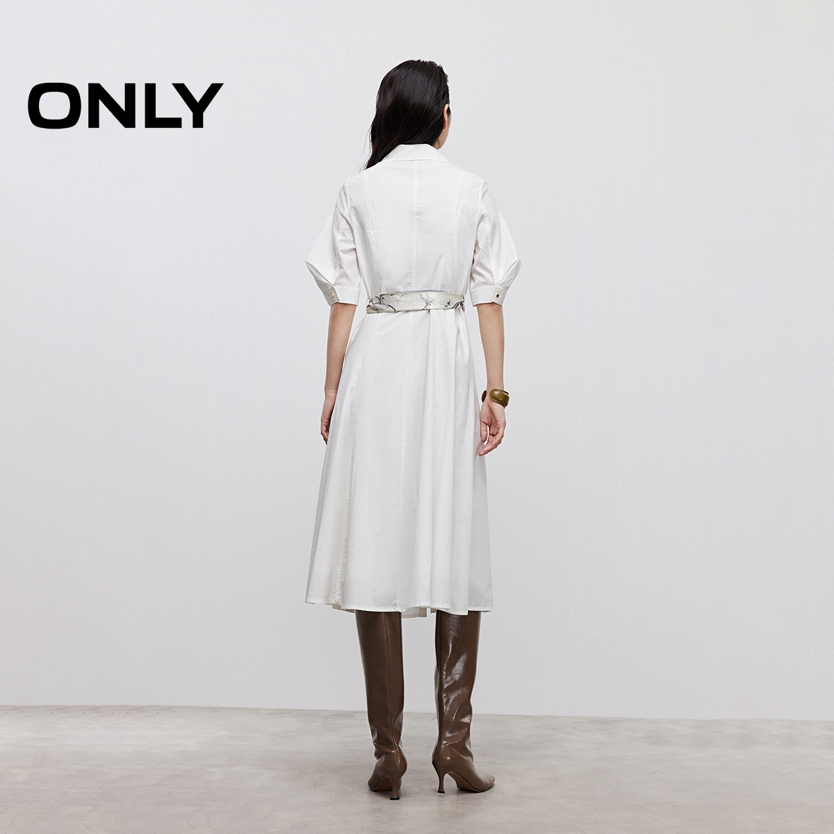 衬衫 ONLY2025秋季 饰腰带短袖 优雅A字伞摆丝巾装 裙连衣裙女 新款