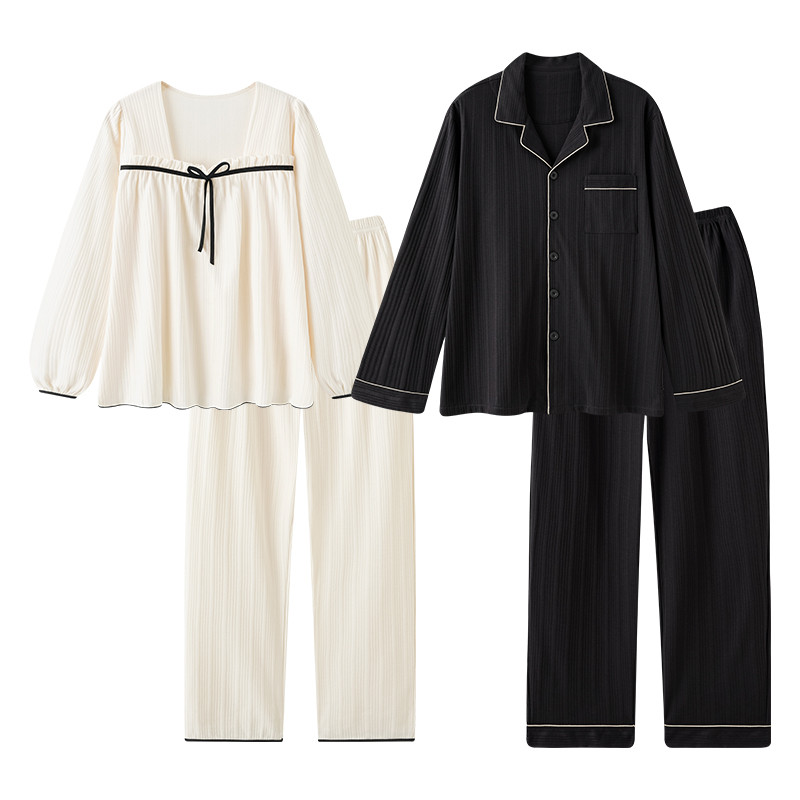 长袖 现货情侣睡衣女春秋季 大码 纯棉高级感甜美秋冬男士 家 2025新款
