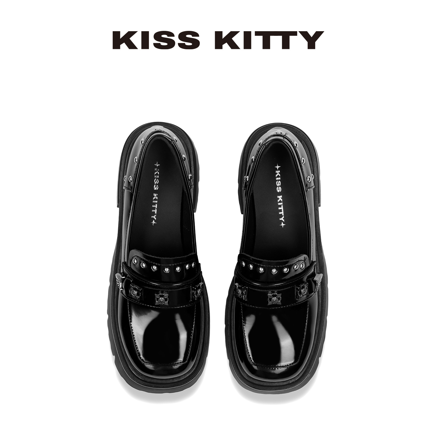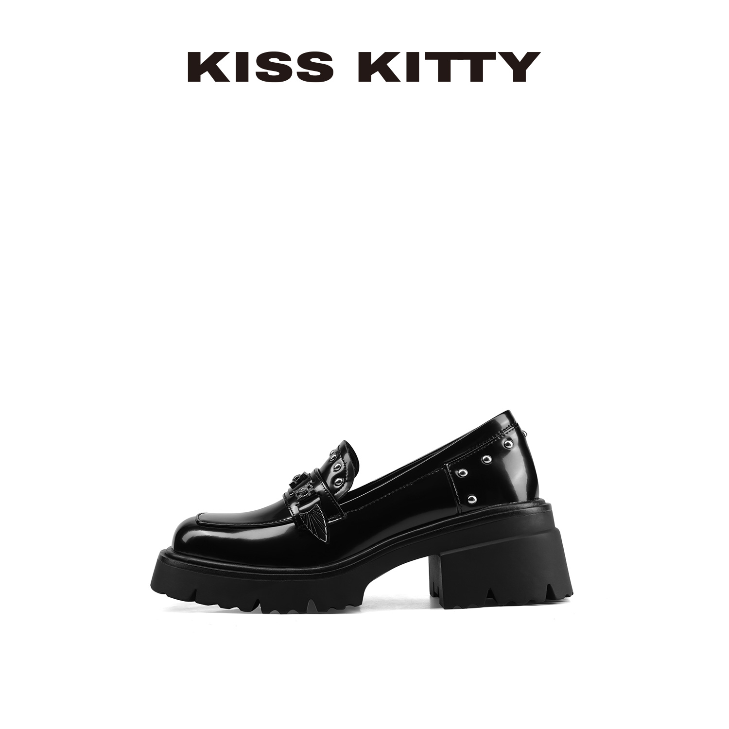 黑色通勤百搭增高单鞋 KISSKITTY朋克乐福鞋 女一脚蹬厚底jk小皮鞋