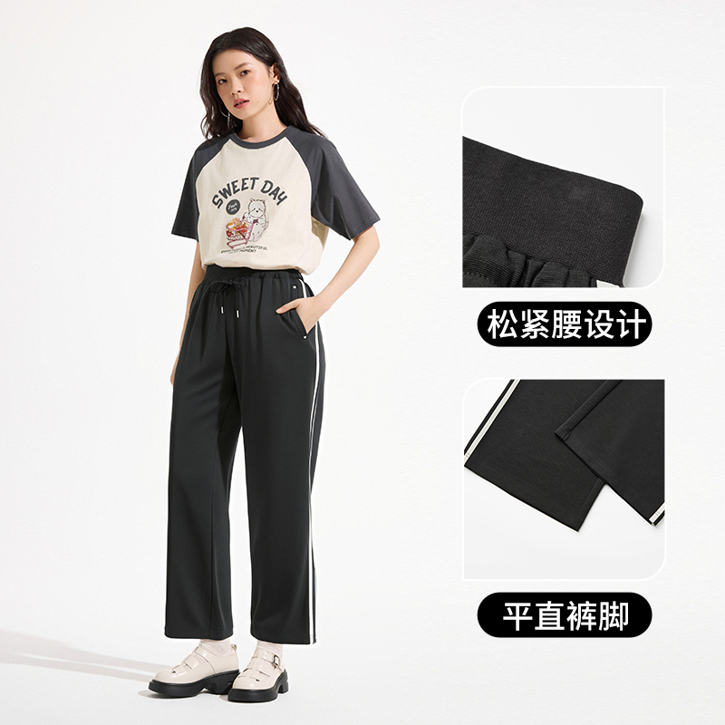 子大码 窄版 运动弯刀卫裤 女春秋2025新款 小个子加长黑色灰色 阔腿裤