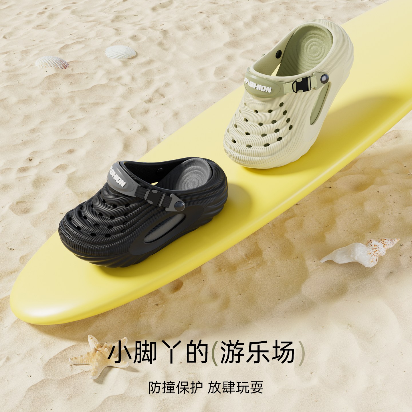 中大童休闲凉鞋 babycrayon儿童洞洞鞋 防滑户外爆款 潮款 男童夏季