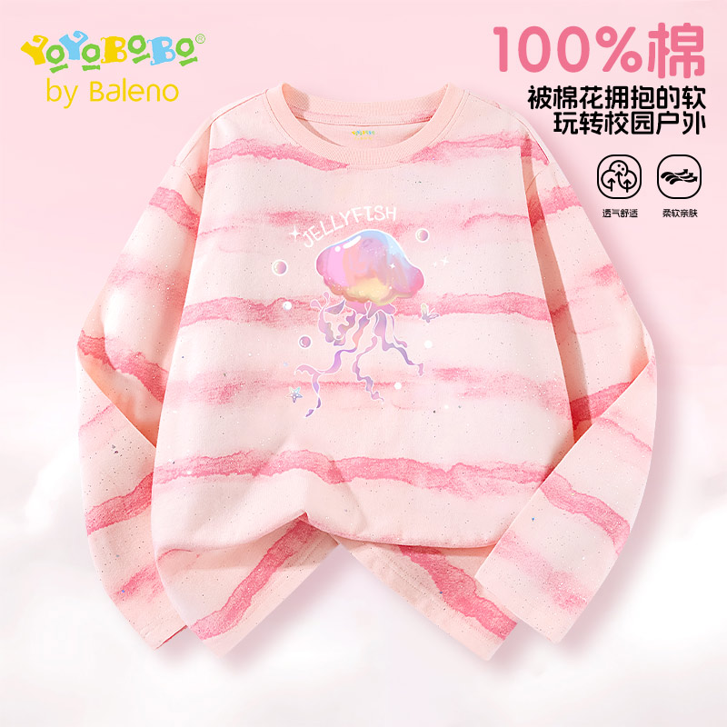 纯棉透气中大童休闲t恤上衣P 2025新款 班尼路童装 YBB系列女童长袖