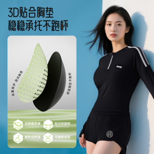 Jeep泳衣女保守高级感2025新款 双层泳防晒速干温泉游泳衣 分体长袖