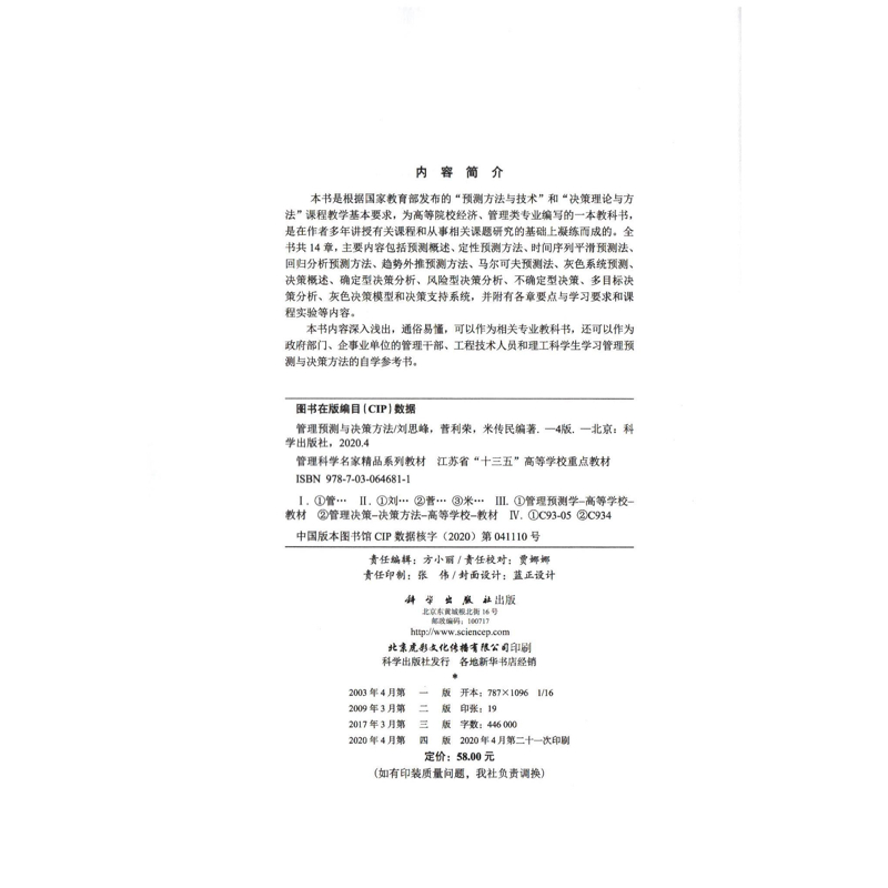 米传民大学教材中国科技出版 管理预测与决策方法 菅利荣 刘思峰 传媒股份有限公司凤凰新华书店旗舰店 第4版