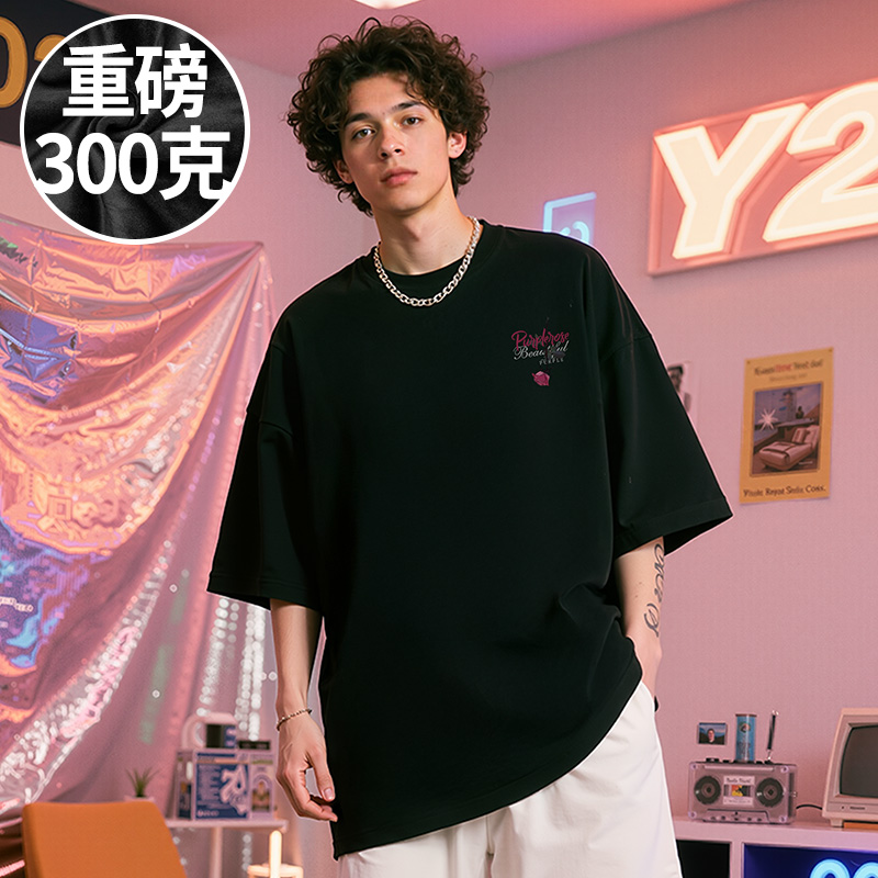 男装 美式 潮牌重磅加肥加大码 短袖 300斤大码 情侣半袖 T恤 100%棉