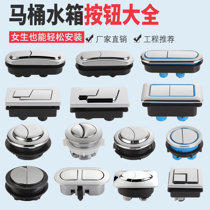 马桶水箱按键冲水开关配件双按钮按压器长方椭圆形盖套座便器