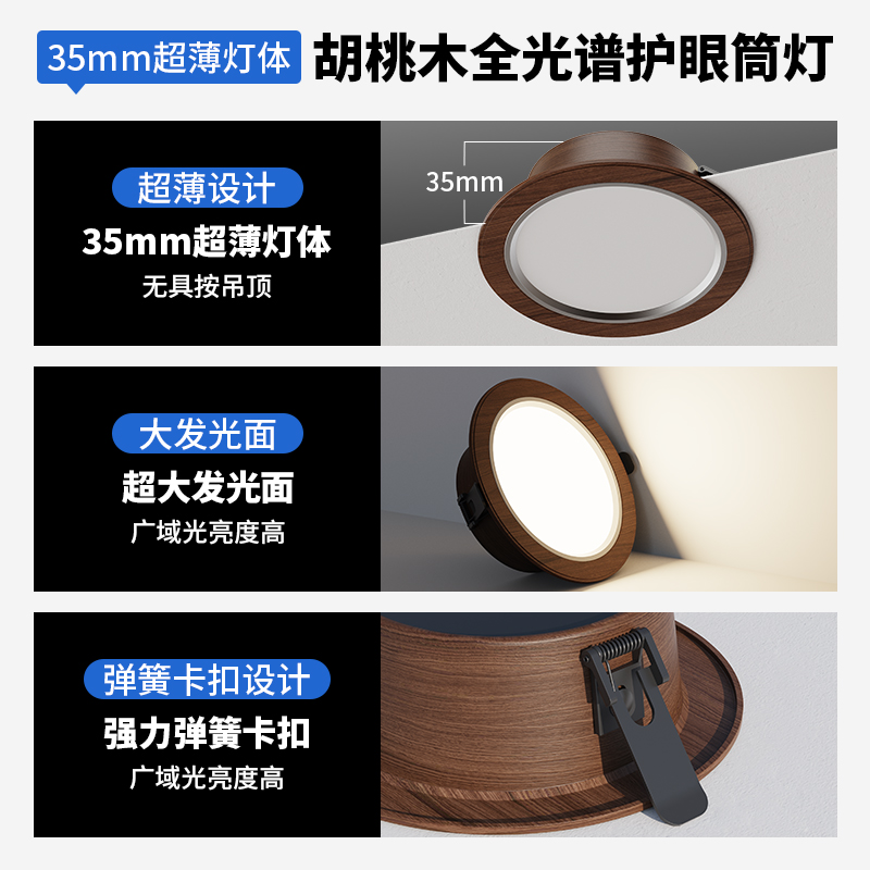 胡桃木筒灯新款 中古风客厅吊顶家用过道走廊木纹色led射灯 嵌入式